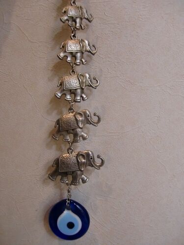 トルコの目玉のお守り「ナザルボンジュ」です。 以前、トルコを旅行したときに購入しました。ゾウさんとのコラボが面白いので、買いました。 玄関に飾っています。まよけですね。 車につけると、ガチャガチャうるさいのですが、トルコでは、車につけている人…