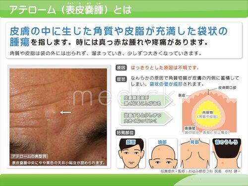 シニアになると、増えてくるのが、 白い犬だとしみ 黒い犬だと白髪そして、シーズーに多いのが 表皮嚢腫という皮疹 ヒトのイラストを拝借しましたが、犬にもこういうのがあります。絞ると、黄色いバターみたいな内容物がでてきます。この嚢腫の内容物が真皮に排出(つま…