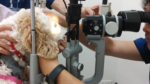 白内障は、眼の水晶体というところが、一部もしくは全部が白濁する病気です。 進行すれば視力は低下し、最後には失明する病気です。 先天性、遺伝性、あとは若年性、老齢性、、いろいろありますが、、 なんと、 まだ、11カ月の子犬のブレンデイくんが、 先天…